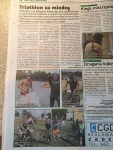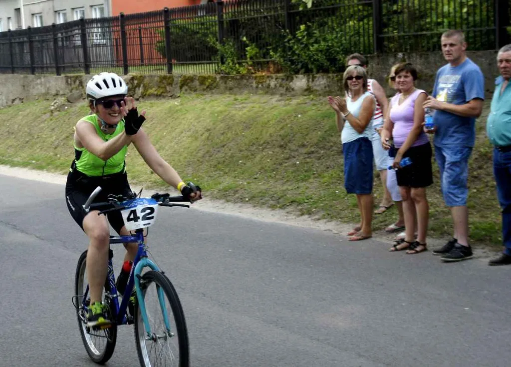 W taki sposób zakończyłam swój pierwszy start w triatlonie na drugim miejscu (niby od końca, ale to już szczegół) i podium w kategorii mieszkaniec Trąbina (tak, zgadliście – byłam jedyna). Pozostał jednak też żal, bo szkoda tej dętki i w sumie na „normalnych” zawodach numer z dostarczeniem roweru oznaczałby dyskwalifikację, a i kondycja jednak nie taka jak być mogła. Z drugiej strony jest też trochę dumy z tego, że się nie poddałam i nie walnęłam tym rozwalonym rowerem w las.